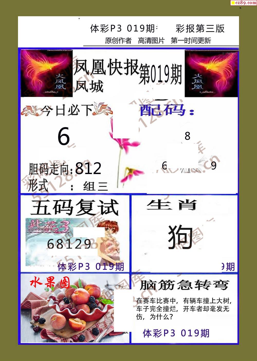 香岛彩报019期体彩p3图谜